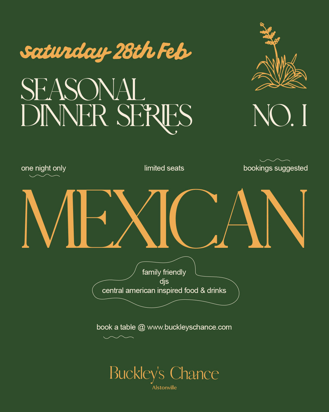 Family friendly, Djs and central american inspired menus curated by Buckley's Chance team.